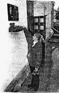 Вера Щелкина на открытии мемориальной доски 17.05.2001 года на здании, где работал прадедушка. Из этой двери он вышел последний раз 41 год назад.