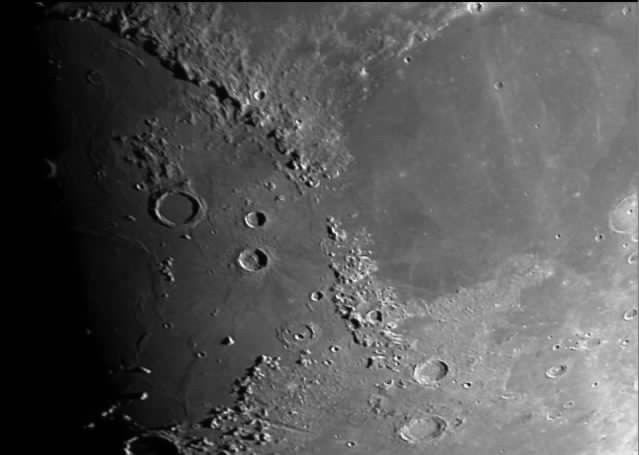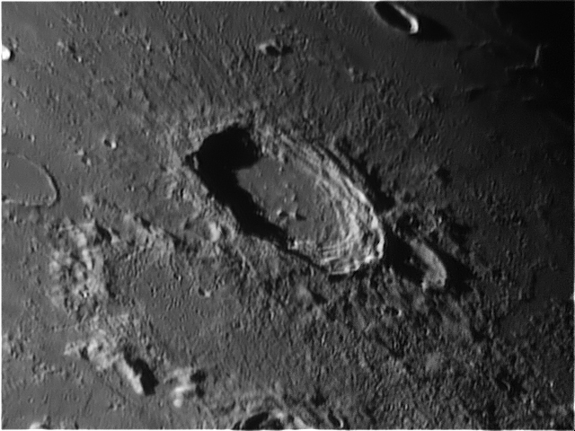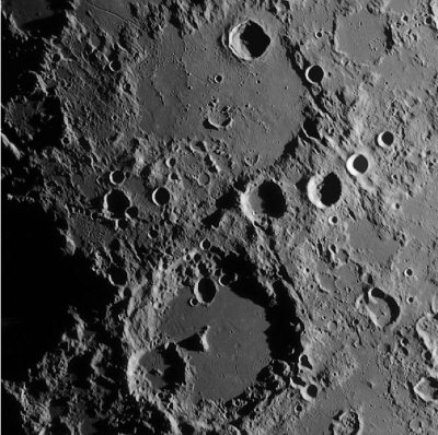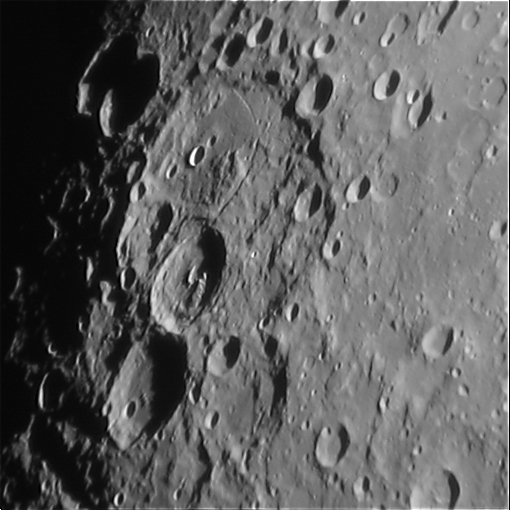 Поперечник первого из них близок к 120 км. Обращает на себя внимание очень сложная структура вала Альбатегния. На нем много «паразитных» кратеров, образовавшихся позже того, как сформировался Альбатегний. Видно, что этот район Луны был когда-то очень активным – и в вулканическом и в тектоническом отношениях.