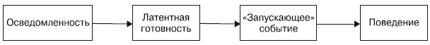 2. Латентная готовность. Позитивная или негативная готовность вести себя определенным образом начинает формироваться часто бессознательно (латентно). Люди подготавливаются действовать, накапливая и развивая опыт, информацию, устную молву, убеждения, мнения и эмоции.