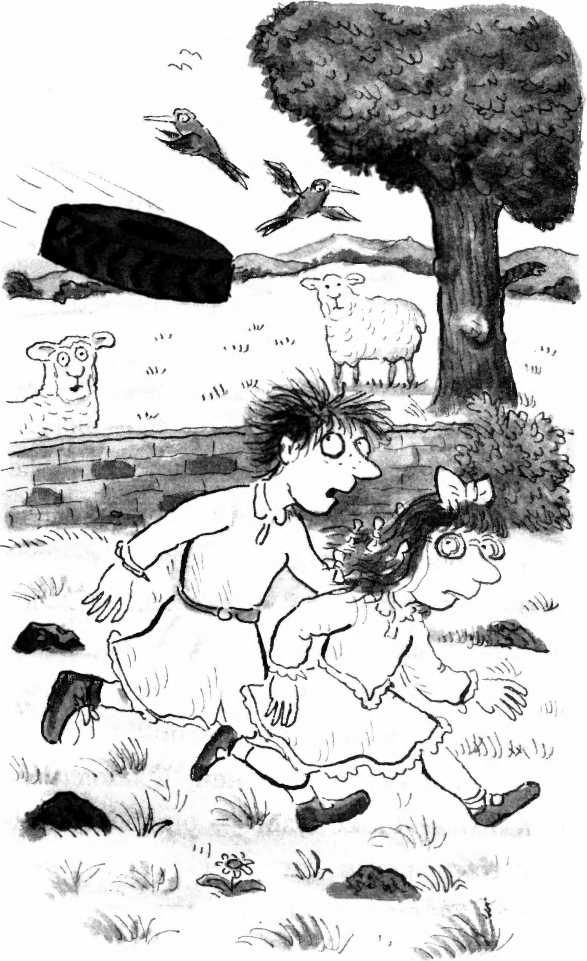 – Мы рассердили мистера Ворчуна-старшего, – начала рассказывать Мими, но её прервала четвёртая... нет, простите, уже пятая тракторная шина, которая неслась прямо на детей. (Я чуть не сбился со счёта.)