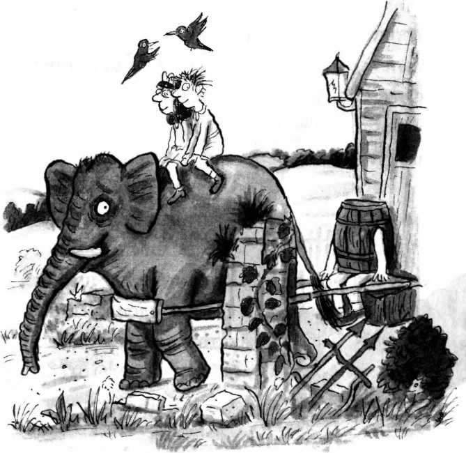 Ах нет, простите, воспитанные люди так не разговаривают. Именно из-за таких словечек лорд Великанн вляпался в КУДА БОЛЬШИЕ проблемы с полицией, чем прежде, когда его арестовывали за целый ряд других провинностей. Эта история приправлена слоновьим навозом, потому что в ней фигурирует слон Пальчик, само собой. Разумеется.