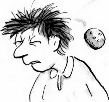Бросок был не самый грациозный, но всё-таки впечатляющий. Раздался жуткий звук удара, а за ним последовала цепочка ОЧЕНЬ грубых слов, которые связались в одно длинное. (Будь это мультик, над мистером Ворчуном-старшим непременно появилось бы облачко со звёздами, восклицательными знаками и сердитым черепом с костями.)