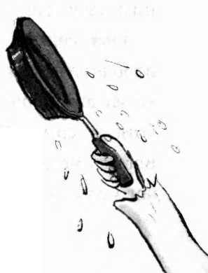 К счастью, всего минуту назад миссис Ворчунья (сегодня была её очередь готовить завтрак) потянулась за сковородкой, которая всю ночь отмокала в большом, до краёв наполненном водой тазу (он хранился под кроватью, чтобы не занимать много места).