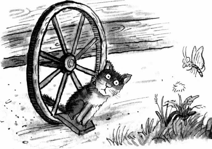 Он не ошибся. Миссис Ворчунья умудрилась столкнуть с подоконника второго этажа свою любимую подставку под дверь в форме кота – Медового Пряника, и он зацепился хвостом за спицы колеса... Лучик попросил Пальчика остановиться.