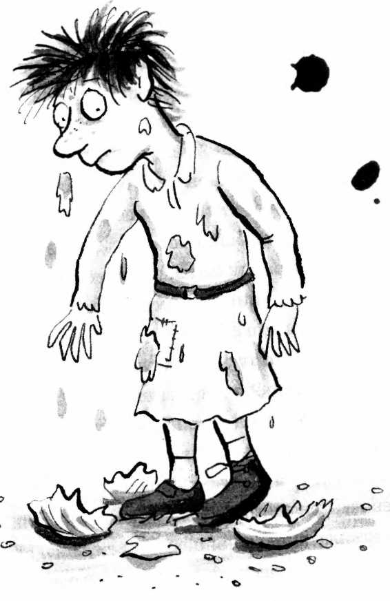 Дети забежали в фургон, и Лучик подхватил одну дыню. Он распахнул дверь, и навстречу ему вылетела большая ступня мистера Ворчуна. Дыня в руках Лучика попала под удар и с хлюпающим звуком взорвалась фонтаном сладкой мякоти, забрызгав мальчика с головы до ног. Теперь он выглядел так, будто на него чихнул великан с ОГРОМНЫМ носом.
