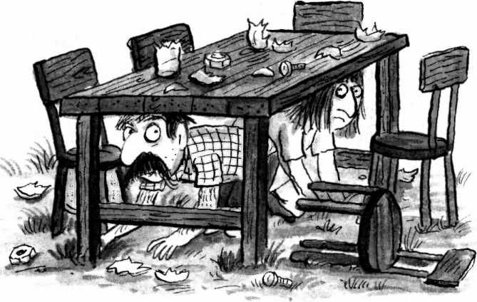 Боеприпасы закончились, а с ними и веселье. Мистер Ворчун потопал обратно к фургону. За ним, отставая всего на пару шагов, семенила миссис Ворчунья (с Медовым Пряником в руках).