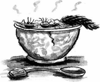 Лучик с Мими прислушались к громкому стуку, с которым бобы и болты врезались во всё, кроме цели – вывески со свиньёй. Дети тоже вышли на улицу и обнаружили у входа в таверну рассерженного Нектарина: он держал на ладони поднос с разбитыми стаканами, из которых вытекал апельсиновый сок, и вытаскивал боб из спутанных волос.