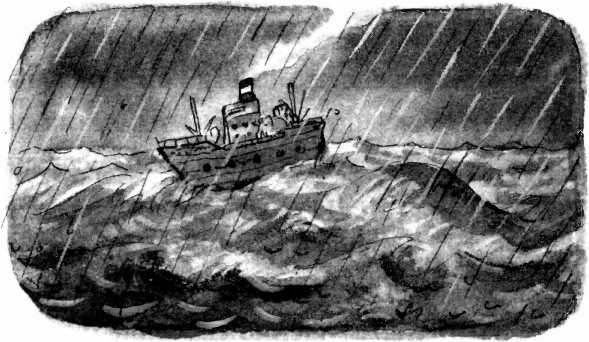 В эту ночь, их вторую ночь в море, поднялся шторм. Он был не таким уж и сильным, но мистер Ворчун весь позеленел – иными словами, на него напала морская болезнь... иными словами, почти всё время происходило одно из трёх: а) ему казалось, что его тошнит; б) его в самом деле тошнило; в) ему казалось, что его тошнит, пока его в самом деле тошнило.
