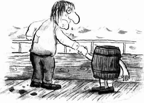 Он уж было решил, что больше никогда не увидит человечка в бочке, и теперь очень обрадовался.