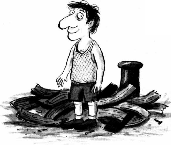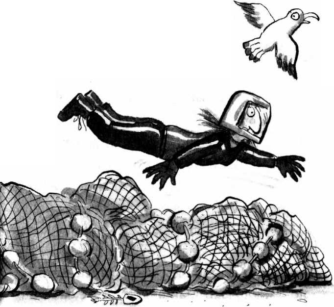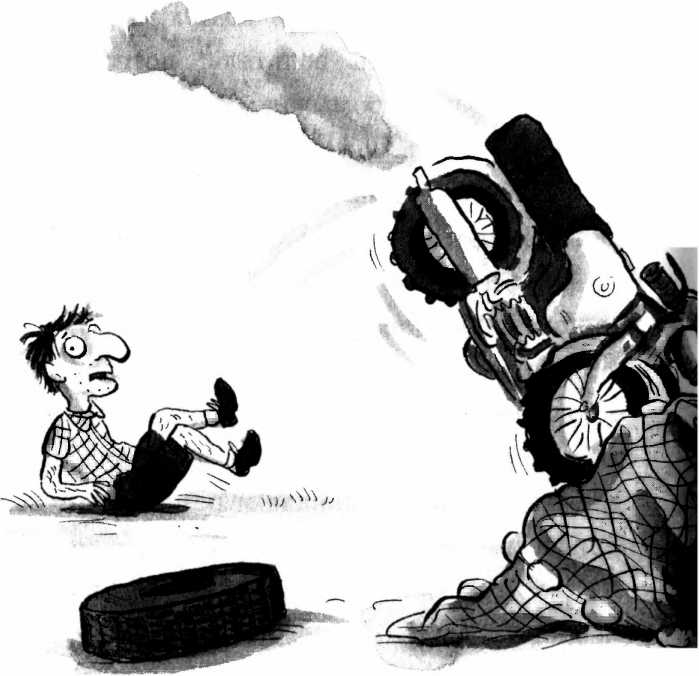 Миссис Ворчунья взяла одну шину в правую руку, а другую – в левую. Во всеоружии и в полной боевой готовности она вернулась на холм, прицелилась и совершила бросок...