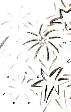 В этот момент огонь, видимо, добрался до новых фитилей. Снова послышалось громыхание, и небо озарилось россыпью разноцветных вспышек.