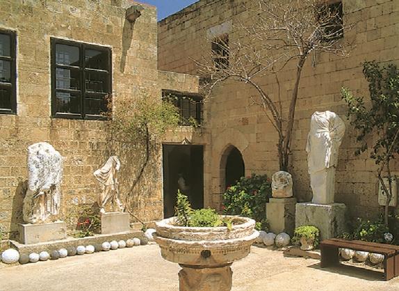 Наискосок на противоположной стороне от церкви Панагиа ту Кастру в бывшем госпитале Ордена (5) рыцарей-иоаннитов располагается вход в **Археологический Музей. Это двухэтажное здание с четырьмя флигелями и двойной арочной галереей построено в 1440-1489 гг. Оно окружает просторный внутренний двор прямоугольной формы. В свое время помещения под галереей использовались как подсобные клети, кладовые и стойла. Весь верхний этаж восточного флигеля занимала Большая палата для больных. Ее длина равна 51 м, высота достигает 7,5 м, ширина – 12,25 м; ряд восьмигранных колонн делит палату на два пролета. В восточной стене устроена апсида маленькой часовни, камин в южной стене давал немного тепла. У каждого больного, независимо от его социального положения, состояния, национальности и вероисповедания, была отдельная кровать, закрытая пологом. О телесном благосостоянии больных заботились братья Ордена, врачи, хирурги и аптекарь.