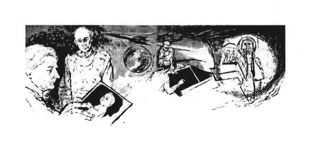 Через пять дней два маленьких космических катера поднялись с поверхности планеты и достигли орбиты, по которой плыл большой корабль. Катера скользнули внутрь корпуса, и переборки шлюзов закрылись за ними. Немного времени спустя инопланетяне встретились снова.
