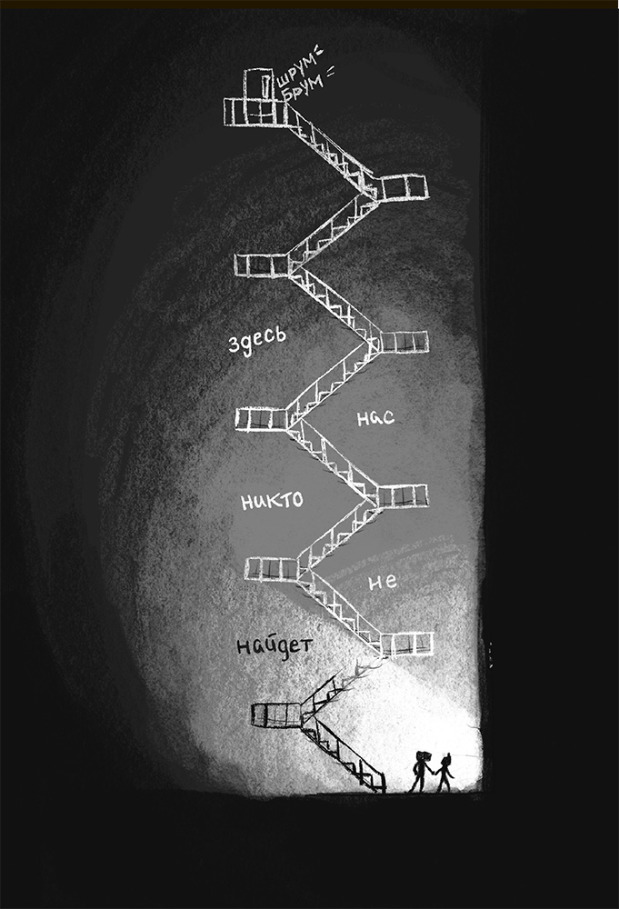 – Что мы тут забыли? – хнычет мальчик. – Тут жутко. А следующая смена не может уже выйти?