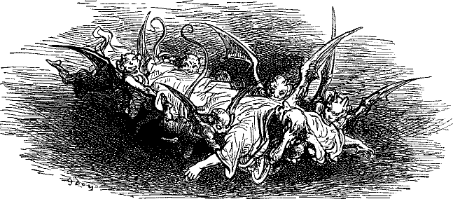 Ой-ой-ой, да что ж это я плету, что ж это я горожу? Пусть меня черт возьмет, ежели я к нему пойду. Комната его уж теперь полна чертей, вот как Бог свят. Я отсюда вижу, что за чертова тяжба и потасовка у них идет из-за того, кому первому сцапать Котанморданову душу и, не долго думая, переправить к мессеру Люциферу. Подальше оттуда! Я к нему не ходок. Пусть меня черт возьмет, ежели я к нему пойду. Почем я знаю, может выйти недоразумение, и заместо Котанмордана они сграбастают беднягу Панурга, раз он теперь никому не должен. Вот когда я был в долгу как в шелку, они сколько раз оставались с носом. Подальше оттуда! Я к нему не ходок. Ей-богу, я умру от ужаса. Очутиться среди голодных чертей, среди чертей, вышедших на промысел, среди чертей, занятых делом? Подальше оттуда! Бьюсь об заклад, что из-за того же самого на похороны к нему не придут ни иаковиты, ни кордельеры, ни кармелиты, ни капуцины, ни театинцы[647]647