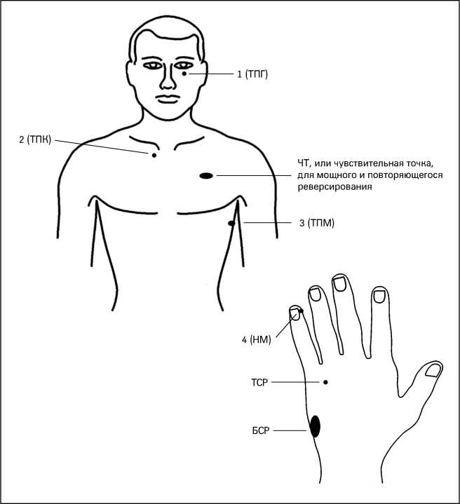2. Проработайте возможность частного реверсирования, мешающего вам добиться хороших взаимоотношений, стимулируя зону БСР или растирая ЧТ, при этом трижды проговорите утверждение, раскрывающее суть вашей проблемы. К примеру, в случае Тары это звучало бы так: «Я принимаю саму себя несмотря на то, что хочу находиться рядом с мужчиной, которого считаю влиятельным и интересным». Другое реверсирование, нуждающееся в проработке, могло бы звучать следующим образом: «Я принимаю себя, пусть даже предпочитаю мужчин, которые меня не любят и унижают». Несмотря на то, что данное утверждение вроде бы расходится с тем, чего вы пытаетесь достичь, вам, чтобы изменить свое поведение, необходимо его принять.