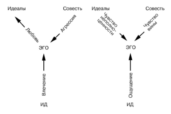 Психоаналитическое разделение на Ид, Эго и Супер-Эго, или Эго-Идеал, составляющие человеческую личность, может помочь нам сориентироваться на первых порах.