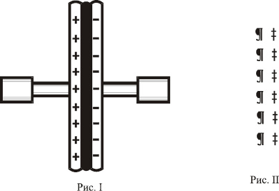 Две металлические пластины, А и Б, разделены изолирующей прослойкой. Если одна пластина конденсатора заряжена положительно, то на другой соберутся отрицательные заряды; но при непосредственном контакте положительные и отрицательные заряды нейтрализуют друг друга (рис. 10). Границы Эго ведут себя точно таким же образом. Необходимо лишь заменить + и – на ¶ и ‡, которые обозначаются в психоаналитической терминологии как либидо и враждебность (рис.11)40.