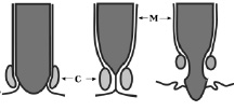Геморрой – это замечательный пример результата отрицания (насилия) отрицания (запора). На следующих рисунках С обозначает закрывающие мышцы, сфинктеры, М – внутреннюю поверхность, мембрану прямой кишки.