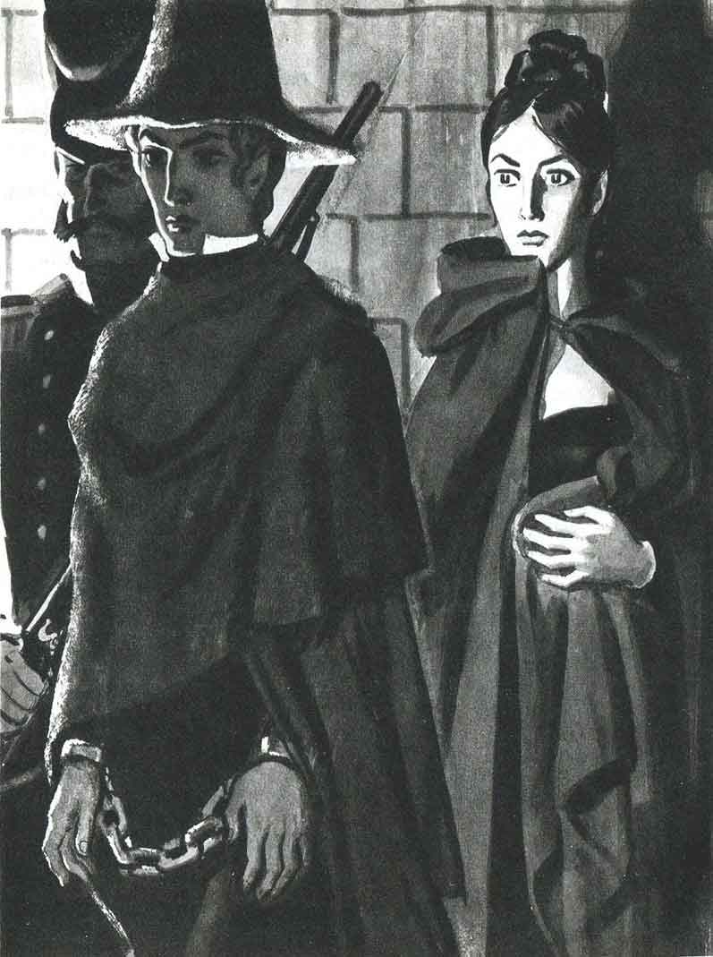 Все уже давно затихло. Ванина ждала, погрузившись в мрачные мысли. Пробило полночь, и вскоре послышался какой-то шелест, словно летучая мышь пролетела. Ванина повернулась, хотела шагнуть и почти без чувств поникла на балюстраду, отделявшую алтарь. В то же мгновение два призрака неслышно выросли перед ней. Это были тюремщик и Миссирилли, весь опутанный цепями. Тюремщик открыл дверцу фонаря и поставил его на столбик решетки рядом с Ваниной, чтобы свет падал на узника, затем отошел к дверям. Едва тюремщик удалился, Ванина бросилась Миссирилли на грудь, сжала его в объятиях и ощутила холодные острые грани цепей. «Кто его заковал?» – думала она. Объятие было безрадостным. А вслед за этим ее пронзила жестокая боль: ей показалось вдруг, что Миссирилли знает о ее преступлении, – так холодно он встретил ее.