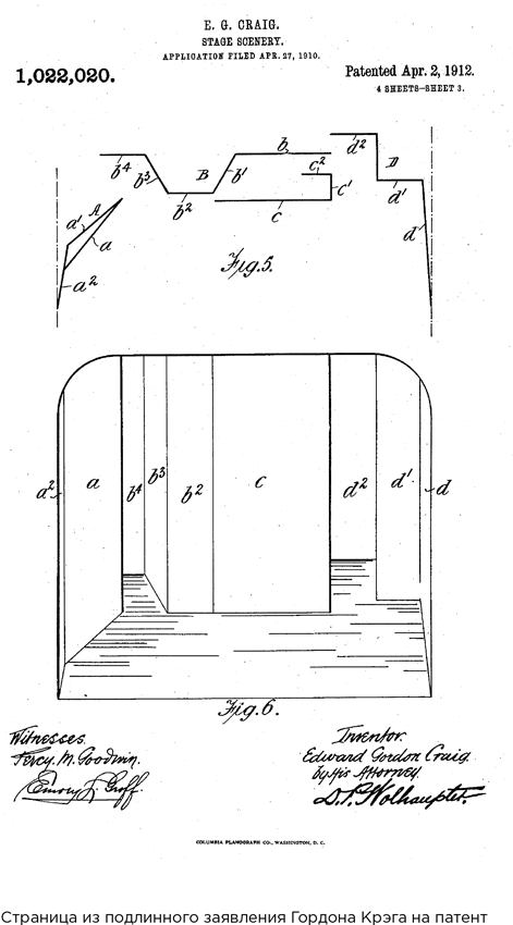 При создании модульных декораций для мастерской в Калифорнийском университете я вдохновлялся работами Эдварда Гордона Крэга – театрального деятеля начала XX в., знаменитого своими революционными идеями. Крэг был сыном прославленной английской актрисы Эллен Терри и сам тоже начинал как актер, но впоследствии стал ведущим постановщиком-новатором своего времени. Отказавшись от использования реалистических декораций, он и другие выдающиеся художники, такие как, например, Адольф Аппиа (настоящий кудесник сценического освещения и оформления), занялись разработкой более абстрактных, атмосферных декораций с богатой цветовой палитрой, в которых великие театральные спектакли того времени, будь это постановки новейших пьес или классика вроде Шекспира, смотрелись бы более выигрышно. Крэг запатентовал оригинальную систему передвижных и складных панелей, которые можно было составлять в бессчетное множество комбинаций, – в сочетании со световыми проекциями и тенями они могли послужить пьесам очень драматичным и эффектным фоном. Он продал свою идею Константину Станиславскому, руководителю Московского Художественного театра, и там его панели были использованы для оформления постановки «Гамлета» в 1912 г. «Бытует живучий театральный миф, будто эти экраны оказались непрактичными и повалились в ходе первого представления. Его источником, вероятно, послужил соответствующий пассаж из книги Станиславского «Моя жизнь в искусстве» (1924). Крэг потребовал, чтобы автор убрал этот фрагмент, и сам Станиславский также признал, что этот инцидент произошел на одной из репетиций, а не на представлении. Впоследствии он официально принес Крэгу извинения, заявив, что прискорбное происшествие было следствием ошибки рабочих сцены, а не дефекта в самом дизайне панелей»[8]. Позднее Крэг продал панели Уильяму Батлеру Йейтсу и леди Огасте Грегори, основателям дублинского Театра Аббатства, где его изобретение успешно использовалось на протяжении многих лет.