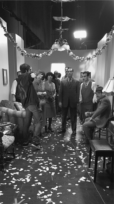 Учитывая сложный рисунок перемещений большого числа актеров и необходимость все время менять расположение камер, разметка на полу нашей площадки – указывающая, где все и вся должны находиться на разных этапах истории, – превратилась в обширную сеть разноцветных точек и стрелок. Она была видна и, более того, очень заметна на всех планах за исключением тех, что снимались с самых низких точек. Так как б`ольшая часть моей истории разворачивается на празднике, я решил обсыпать площадку конфетти из подвесных машин. Хотя конфетти не закрыло многочисленные цветные отметки на полу, оно помогло их замаскировать, чтобы они не так бросались зрителю в глаза.