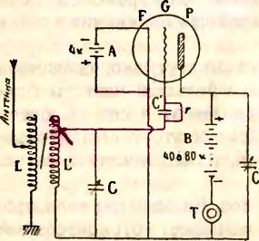 Обоих их натолкнул на их изобретения Эдиссон, впервые обративший внимание на движение электронов в электрической лампочке, хотя он и понятия не имел о том, что оно собой представляет. Катодными лампами можно пользоваться еще иначе. Наиболее важно применение их для усиления при помощи регенерации. Оно открыто в 1912 году американцем Армстронгом и называется схемой Армстронга. Он заметил, что радиотоки могут быть усилены, когда цепь цилиндра настроена на приходящую волну. Это давало основание думать, что лампа имеет свойство излучения энергии. Армстронг использовал это свойство и придумал способ возвращать часть энергии из цепи цилиндра в цепь сетки, создав так называемую систему обратного действия. Эта система давала прекрасные результаты, когда воздушные пути были свободнее– в Соединенных Штатах больше миллиона радиостанций различных систем, – а теперь она совершенно оставлена, так как дает дополнительное излучение.