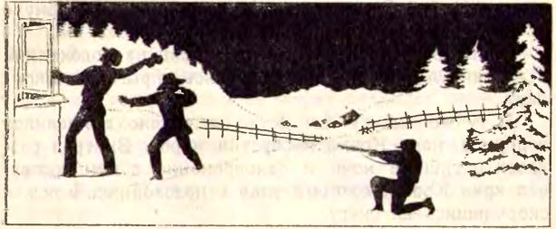 Хюг сообразил, что если он пустится бежать, его следы будут видны на снегу, да ему и не уйти от Олли и его отца. Поэтому он выступил вперед с ружьем в руках.
