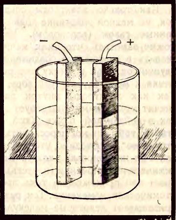 [Закрыть]. Самым общепринятым примером таких веществ служат цинк и медь. Такие вещества носят название «электродов». Растворы, в которые помещают электроды, называются «электролитами». Обыкновенная соленая вода и слабый раствор серной кислоты были наиболее употребляемыми растворами во время раннего периода развития науки об электричестве.