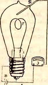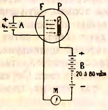 Это, как видите, создает постоянный ток кругом по цепи, через промежуток в лампе, всегда в одном и том же направлении, так как только отрицательные электроны отбрасываются нитями, а цилиндр постоянно соединен с положительным полюсом батареи. Заметьте это, это очень важно.