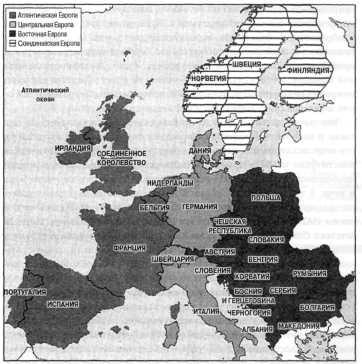 В 1-й половине XX в. Атлантическая Европа, еще не утратившая своего имперского статуса, была настоящим центром мира. Представители Центральной Европы стали играть заметную роль позднее. Страны же Восточной Европы были жертвами. Перед Европой, истерзанной двумя мировыми войнами, стоял фундаментальный вопрос: каков статус Германии в европейской системе? Немцы, вытесненные из имперской системы, созданной Атлантической Европой, хотели ее разрушить и стать главной силой в этом регионе. А после окончания Второй мировой войны лежавшая в руинах, разделенная пополам и оккупированная Германия оказалась на востоке под контролем Советов, а на западе – под контролем Англии, Франции и США.
