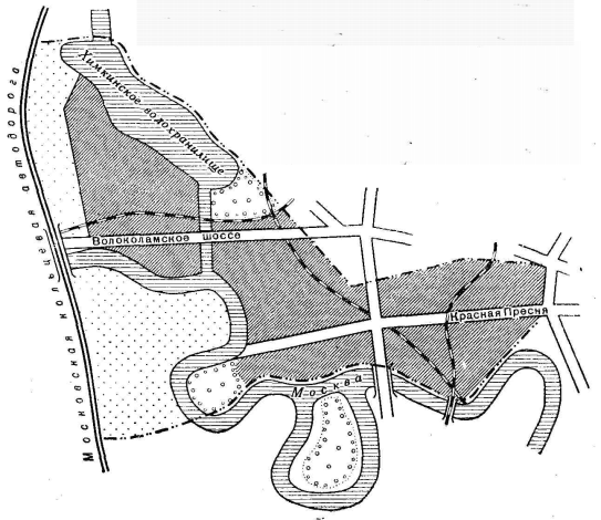 Главные магистрали района – улица Красная Пресня, Хорошевское и Волоколамское шоссе. В северной части района находится Химкинское водохранилище.
