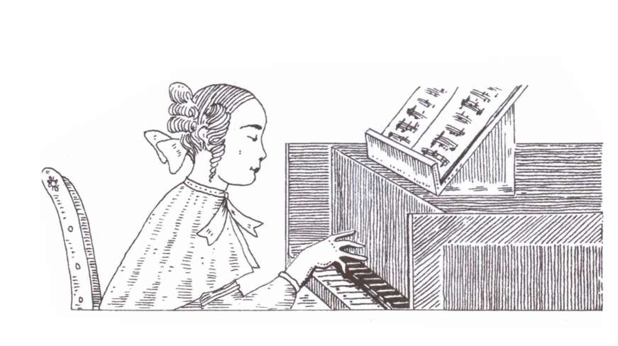 [Закрыть]; из широкой атласной ленты кушак с длинными концами красного цвета – ордена Св. Екатерины; расходимся по обеим сторонам зала, где составляем большое каре. Между тем приготовленные рояли выдвигают на середину, и наши лучшие музыкантши садятся играть на двух роялях пьесу в восемь рук, потом на одном рояле – в четыре руки, и наконец одна с аккомпанементом оркестра.