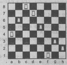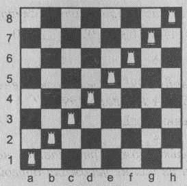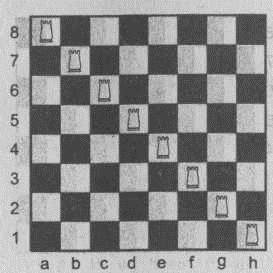 две ладьи на нем бьют друг друга. Ясно, что нельзя расставить больше восьми ладей, так как на шахматной доске всего восемь горизонталей. Восемь ладей можно расставить так: