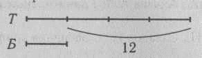 Начертим два отрезка, один из которых вчетверо больше другого, и обозначим числом 12 их разность: