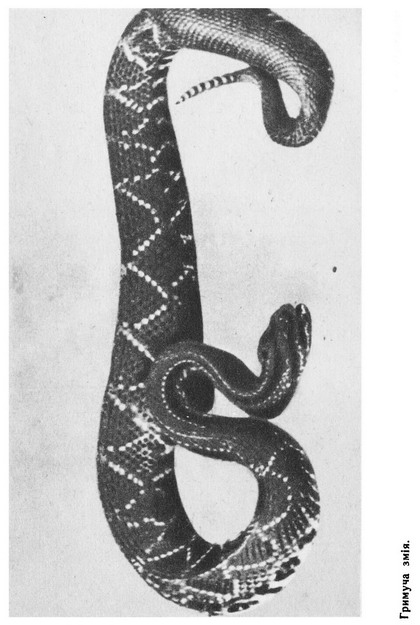 З клітки люто сичить гримуча змія, намагається через густу сітку вкусити мене за коліно, але зуби її зачепилися за дріт. Довелося ножем пообламувати їх. Після такої «операції» гадюці, певно, не скоро захочеться кидатись на сітку…