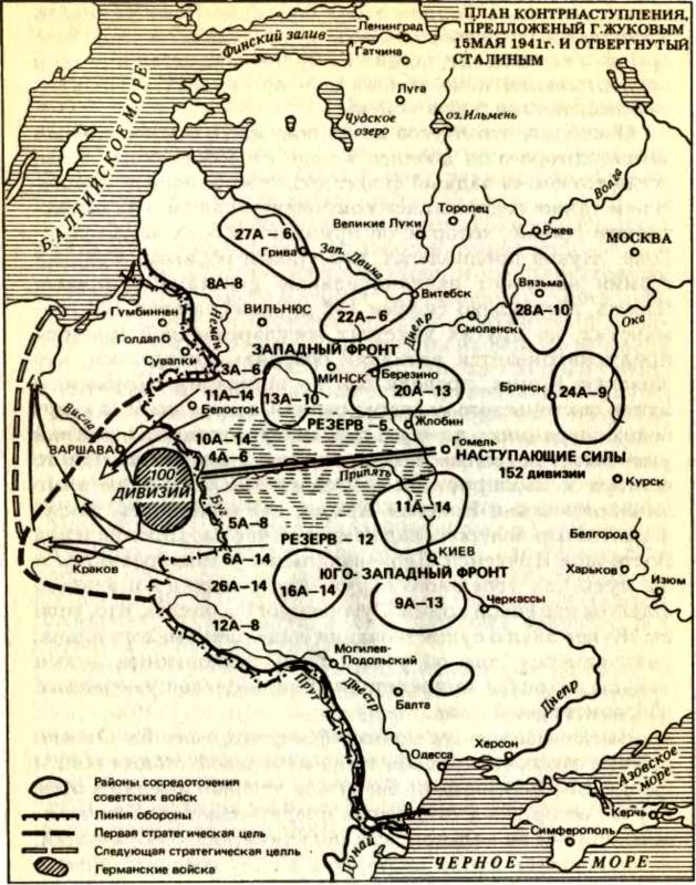 Предложение Жукова вполне сочетается со стилем предшествующего советского стратегического планирования и особенно опытом январских военных игр 1941 г.. Отказ Сталина от этого плана выглядит поистине весьма благоразумным. Сталин был далек от того, чтобы вынашивать мысли о бесшабашных нападениях. Обедая с Жуковым, Тимошенко и другими генералами, он высказал неудовольствие их самодовольством и сказал, что надо «продумать и подработать первоочередные вопросы и внести в правительство для решения. Но при этом следует исходить из наших реальных возможностей и не фантазировать насчет того, что мы пока материально обеспечить не можем»42.