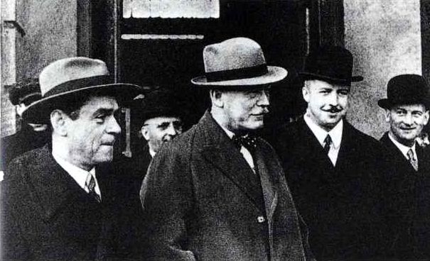 1. Адмирал Дракс и генерал Думенк, возглавляющие союзническую военную миссию, на Ленинградском вокзале в Москве. Авг. 1939 г.