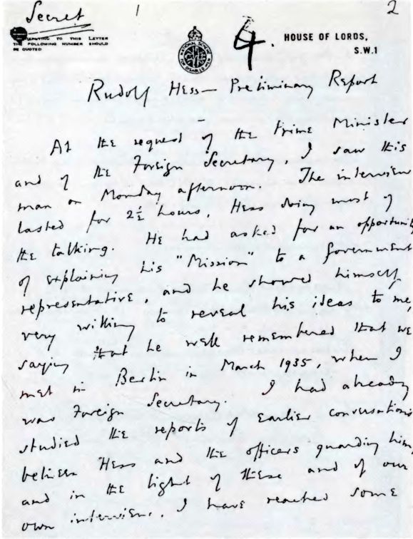16. Доклад лорда Саймона Черчиллю о «переговорах» с Гессом, из которого ясно, что тот прилетел по собственной инициативе.