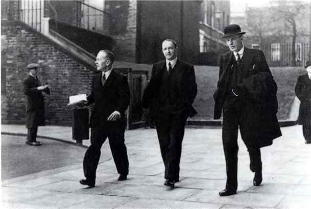 18. А. Кадоган, Р. А. Батлер и лорд Галифакс, идущие из Уайтхолла в Парламент.