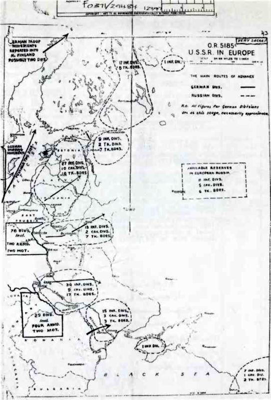 20. Карта британской разведки, показывающая немецкие приготовления на советской границе. Была передана Майскому 16 июня 1941 г.