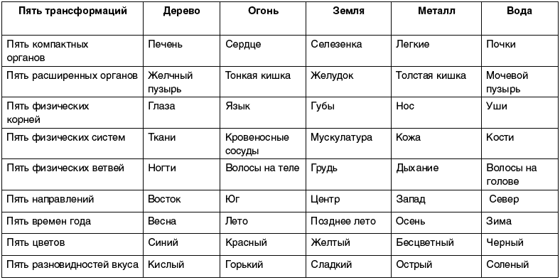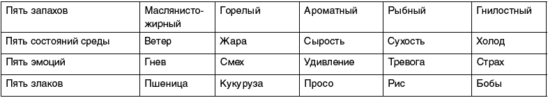 Вкус представляет собой еще одну форму жизненной силы. В восточной традиции он ассоциируется с сезоном, в котором данная пища является преобладающей, с энергией – согревающей или охлаждающей, с органом, для которого она служит источником питания и благотворного влияния. Все это наглядно показано в табл. 4.
