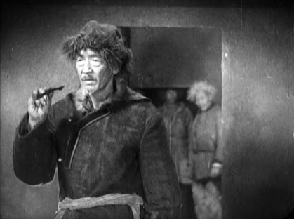 Бай – это враг, «проговоренный» на языке еще вполне большевистском, эссенциалистском. В ходе того самого конфликта, в котором Кузьмина пока еще играет роль подчеркнуто стороннего наблюдателя, мы узнаем, что он не богат – по крайней мере формально, поскольку едва ли не всех принадлежавших ему баранов «роздал родственникам». И если верить сведениям, которые на наших глазах председатель собирается подавать «в район», то бай – в худшем случае середняк, т. е. вполне может быть союзником советской власти. Но нам с самого начала со всей определенностью дают понять, что, в полном соответствии с железной большевистской логикой, бывших врагов не бывает. Для той части публики, которая еще не успела привыкнуть к пониманию кинематографических тонкостей, сеанс срывания масок происходит буквально в прямом эфире: на авансцену выходит будущая помощница героини, сознательная крестьянка, и разоблачает трюк с «раздачей баранов», по сути, представляющий собой едва замаскированную форму эксплуатации односельчан. Далее в дело вступают приемы более тонкие. Непрофессиональный артист Ван Люй-Сян, найденный авторами фильма на ленинградском рынке и блистательно сыгравший роль бая, умудрился крайне скупыми пластическими средствами создать образ хитрого и опасного врага. Улыбчивость, неторопливость вкупе с моментальной готовностью к агрессии4949