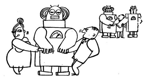 Пусть мы, люди, станем засыпать на электрических матрацах, и они будут укачивать нас в ритме биотоков нашего мозга. Пусть робот железной рукой будет зашнуровывать нам ботинки, а другой тут же массировать лысину. Пусть, освобождая себя от любви, бессонницы, ярости, мы будем глотать психофармакологические таблетки.