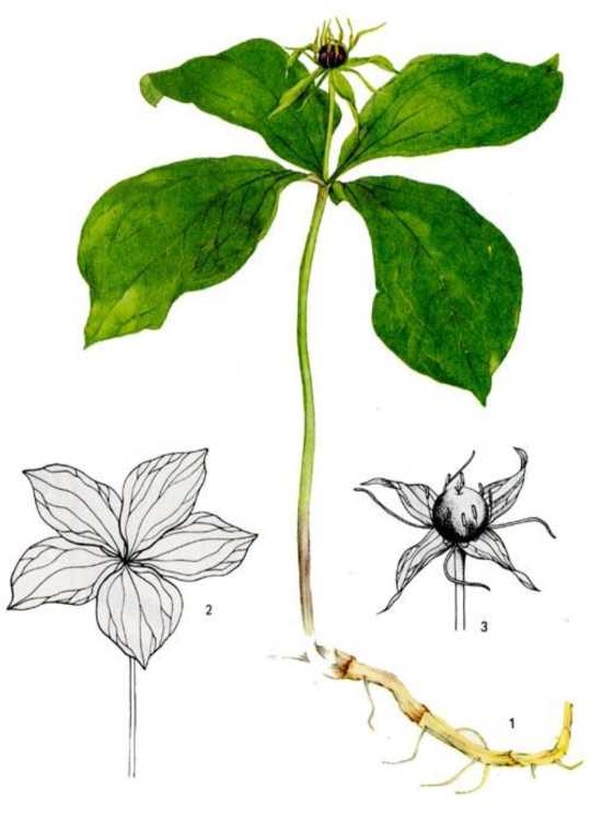 Вороний глаз четырёхлистный (Paris quadrifolia L., сём. Лилейные – Liliaceae). Встречается в смешанных и широколиственных лесах (рис. 3).