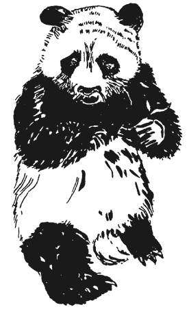 Панда – медведь очень оригинальной окраски. Гигантская панда живет в бамбуковых лесах в гористой части Китая. Это очень пугливые, осторожные звери. Днем они обычно не вылезают из своих укрытий-берлог. Зато с наступлением темноты они разворачивают бурную деятельность и принимаются искать пищу. Их любимое лакомство – бамбуковые побеги.
