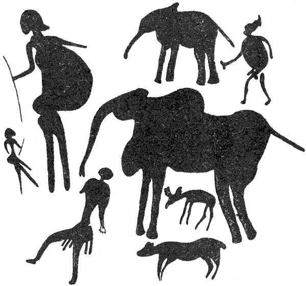 Более поздним временам принадлежали изображения тех животных, что составляли богатство поработителей бушменов – коров белого человека, увенчанных длинными изгибающимися рогами. Но один из самых замечательных рисунков запечатлел фигурку тюленя, изогнутую в виде восьмерки. Теперь стало ясно, что бушмены племени сан предпринимали рискованные походы через бескрайние просторы пустыни, преодолевая расстояние порядка ста пятидесяти километров до побережья Атлантики и, возвратившись домой, запечатляли на камне то, что им довелось увидеть во время странствий.