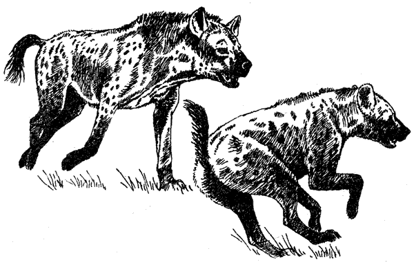 Около восьми часов я и львы неожиданно услышали шаги со стороны находившегося невдалеке русла. Вдруг они внезапно замерли. Воцарилась тишина. Потом зазвучали все громче и громче, как будто кто-то приближался с нарастающей скоростью. Я зажег факел, и в его свете мелькнула гиена. Львов охватило волнение, и они выскочили из загона. И тут я услышал отчаянный рев импалы.