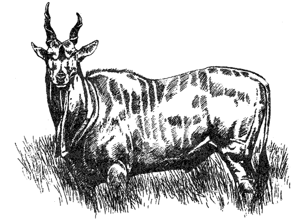После этой пятидневки я обнаружил, что Фьюрейя, охотясь в одиночку, завалила огромного самца антилопы канна. К тому времени ей было только 29 месяцев и весила она около 90–100 килограммов. Канны – самые крупные африканские антилопы, а самец, которого она добыла, был в самом соку и весил 700–800 килограммов, высотой же был в один и семь десятых метра. Я обнаружил ее около добытого ею гиганта; получив с края долины четко слышимый сигнал, я туда и отправился. Там я обнаружил Фьюрейю – она лежала на земле, тяжело дыша, в нескольких метрах от самца канна, которого завалила как раз перед моим приходом. Когда я приблизился, – Фьюрейя вяло поднялась, поприветствовала меня, а затем снова плюхнулась на землю – она была явно измотана долгой борьбой с антилопой. Когда я подошел к ее добыче, она отнюдь не протестовала.