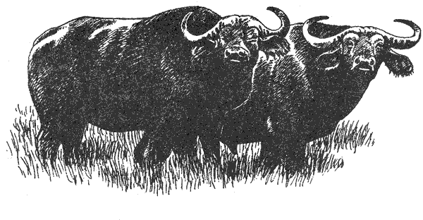 Однажды утром мы спозаранку выехали из лагеря, заслышав доносящийся с востока призыв льва. Лучи восходящего солнца с трудом пробивались сквозь тяжелые серые облака: снова сильные дожди собирались пролиться над Северной Ботсваной. Я осматривал окрестности в поисках львиного следа, когда увидел перед собой стадо буйволов. Оно было не так уж велико по местным стандартам – около ста голов, в то время как в некоторые сезоны года здесь можно видеть одновременно около двух тысяч и даже до трех тысяч буйволов. Каждый день эти животные приходят на водопой на отмели Чобе, и глубокие отпечатки их раздвоенных копыт видны повсюду на красной почве резервата. Возможно, именно здесь, на открытых местах между лесистыми угодьями и рекой, львы охотятся на этих внушительных травоядных.